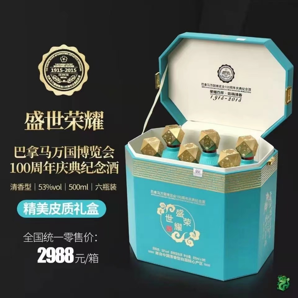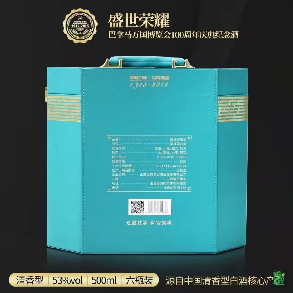 杏花集团 盛世荣耀万国博览会100周年纪念酒 500ml*6瓶精美皮质礼盒装