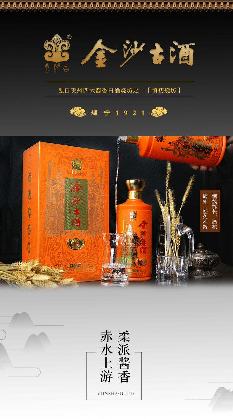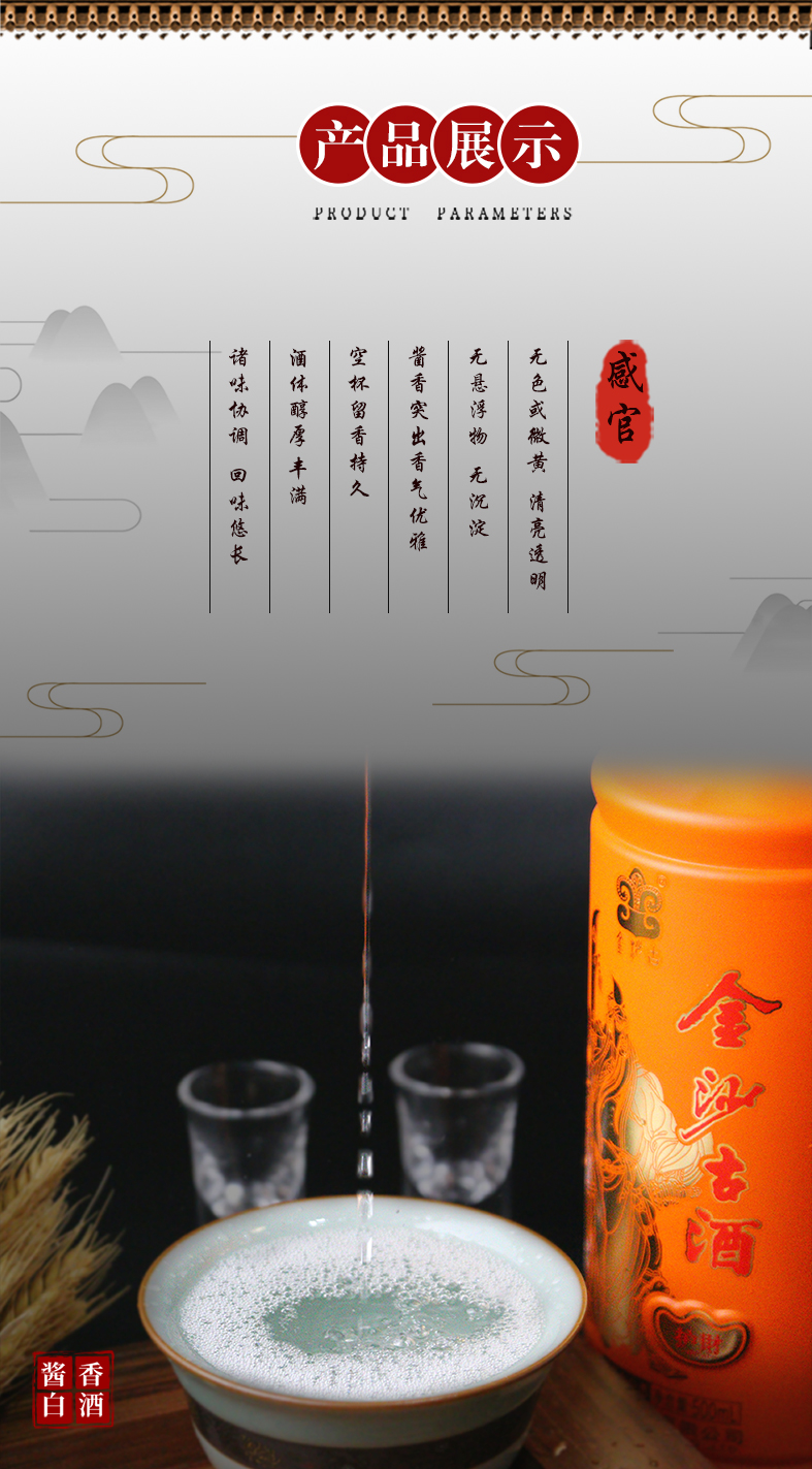 HLYT 金沙古酒 运财 酱香型高度白酒 粮食酒 53%VOL 500ml*6瓶 整箱装
