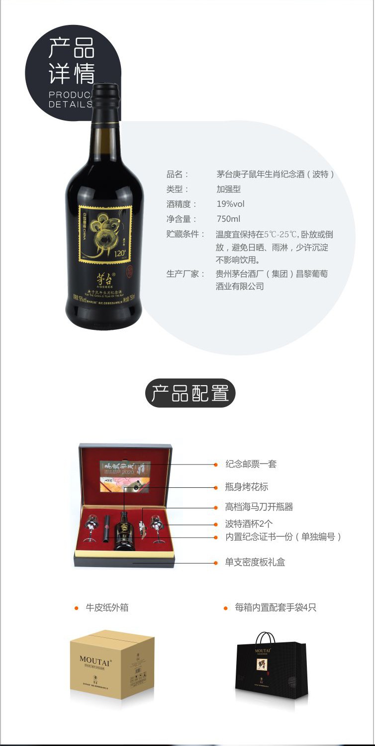 茅台庚子鼠年生肖纪念酒 19%VOL 750ml*4支 整箱装