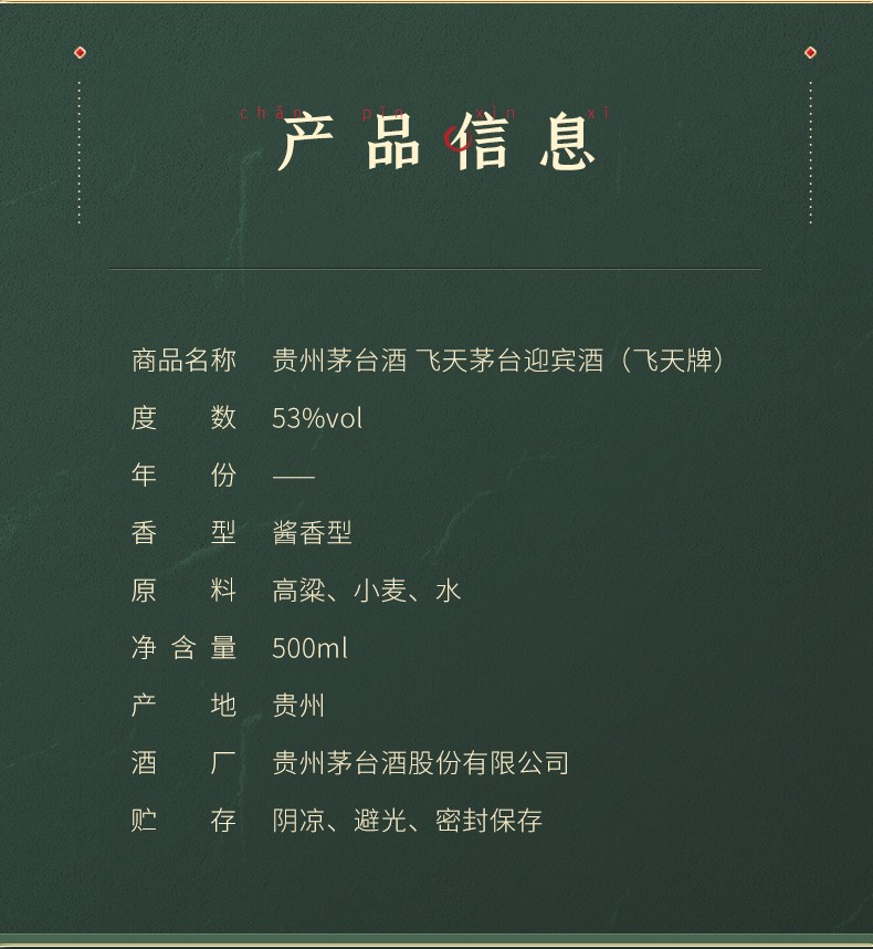 贵州茅台 53度飞天迎宾酒(飞天标) 酱香型白酒 500ml*6瓶装