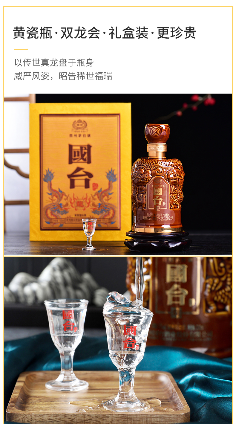 国台 龙酒 酱香型白酒 53度 陈年份老酒收藏 酱酒 500ml*6瓶 整箱