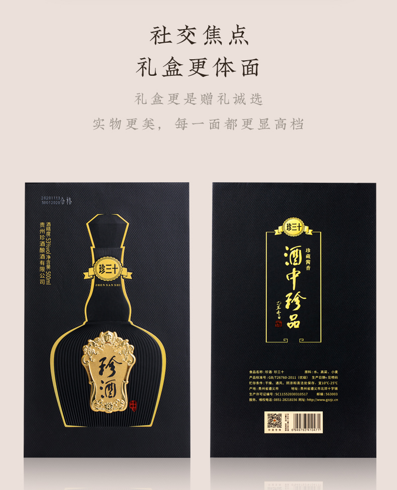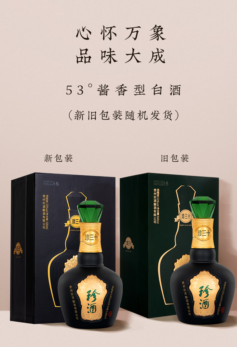 贵州珍酒 53度酱香型白酒醇香窖藏粮食坤沙酒酒中珍品 珍三十(500ml*4瓶)整箱