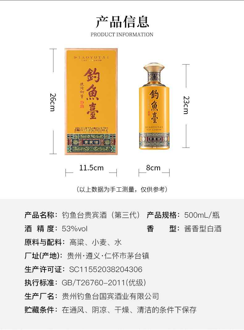 钓鱼台 贵宾酒(第三代)酱香型白酒 53度 500ml*6瓶 整箱装