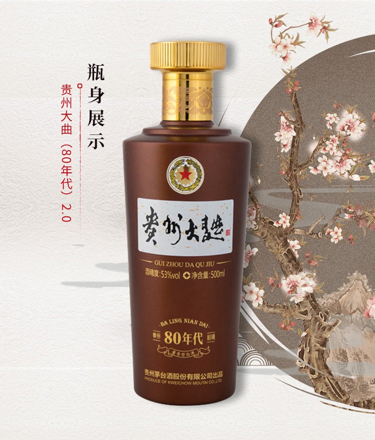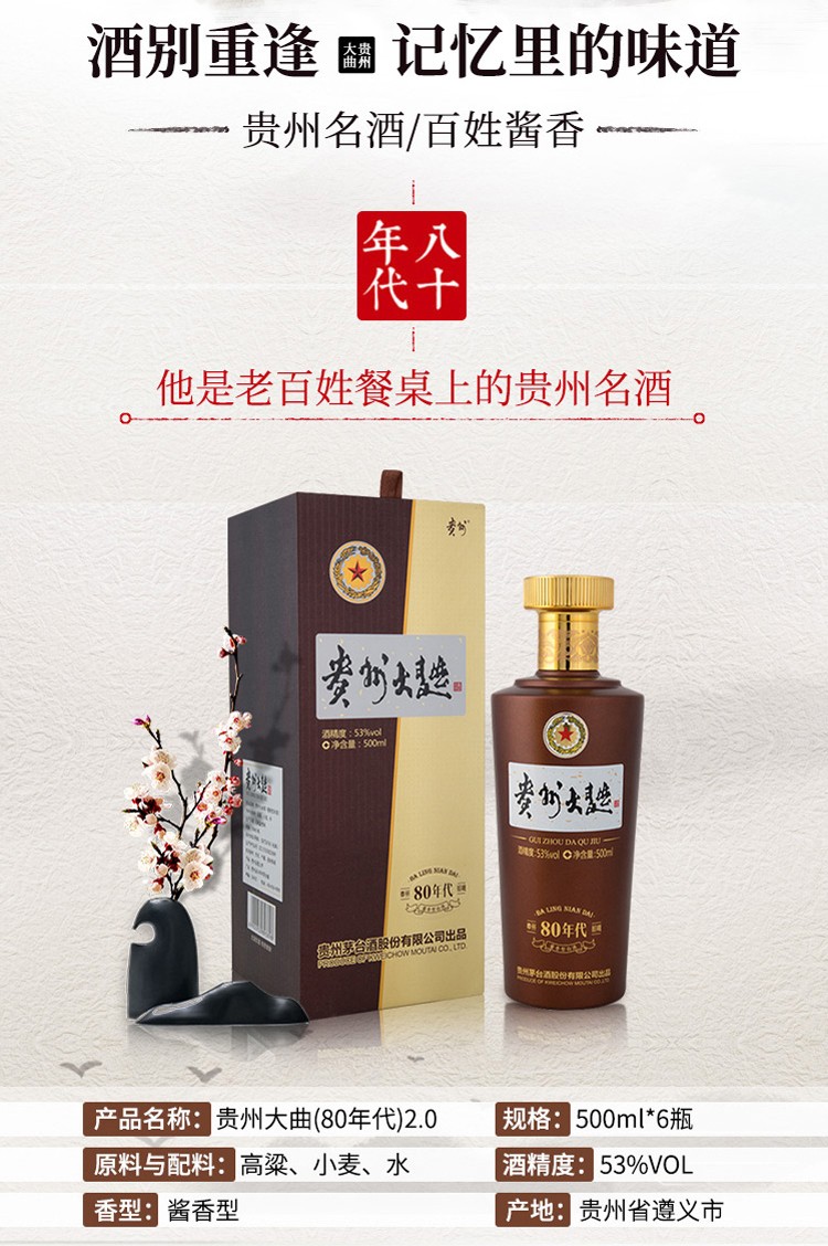 茅台 贵州大曲酒 80年代 酱香型白酒 53度 500ml*6瓶 整箱装 贵州茅台酒股份有限公司出品