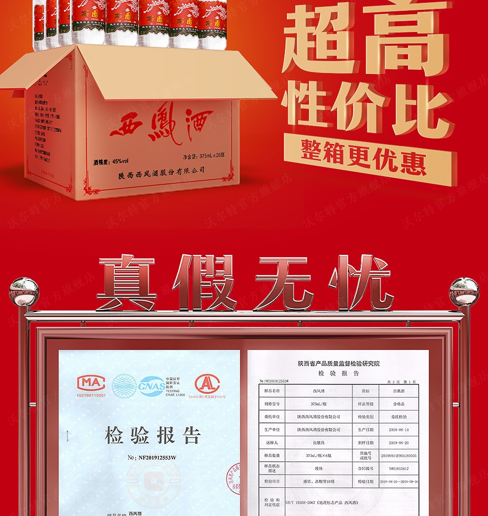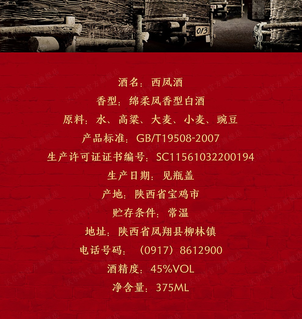 WYB 西凤酒 西凤375 凤香型白酒 45度 375ml*20瓶整箱装