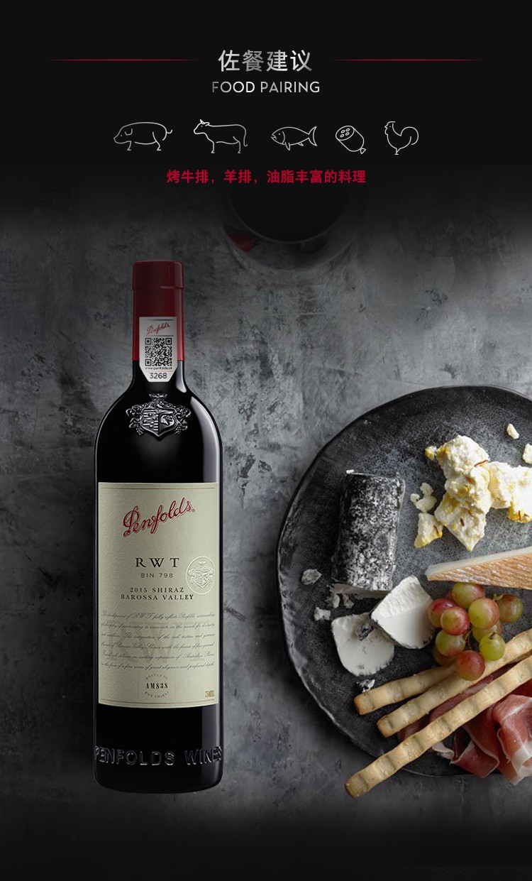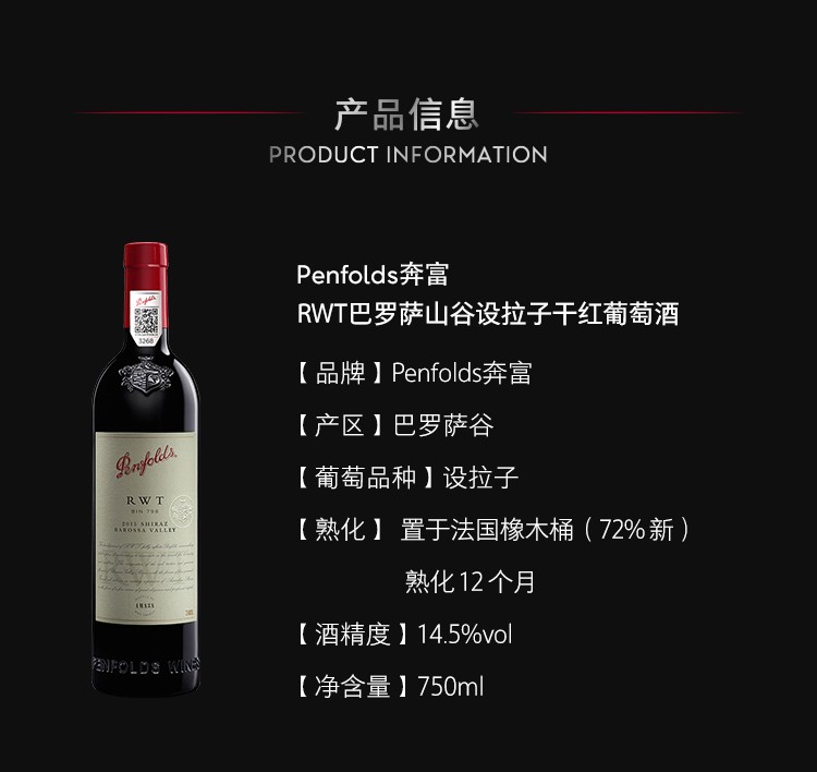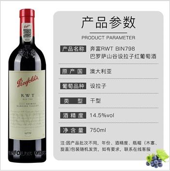 TJL 奔富(Penfolds)BIN系列红酒 澳洲原瓶进口干红葡萄酒 装奔富798/rwt 14.5%VOL 750ml*6支