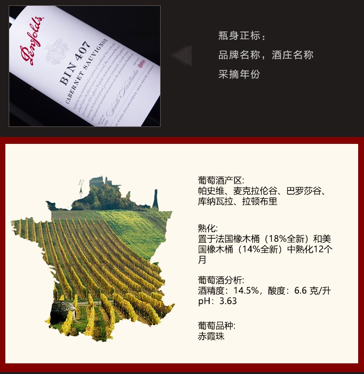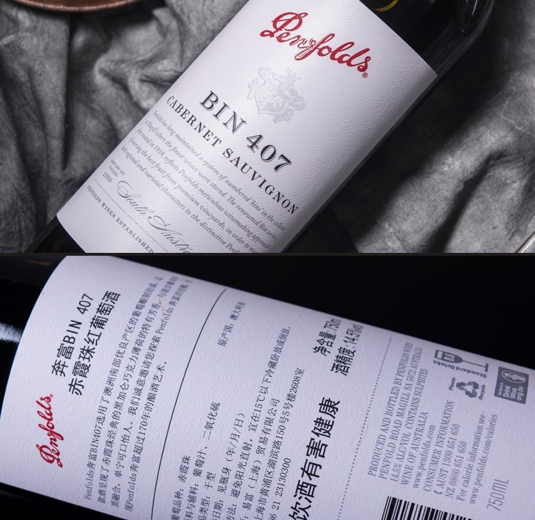 TJL Penfolds 澳洲进口红酒 奔富BIN407赤霞珠干红葡萄酒 14.5%VOL 750m*6支装