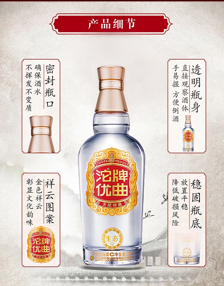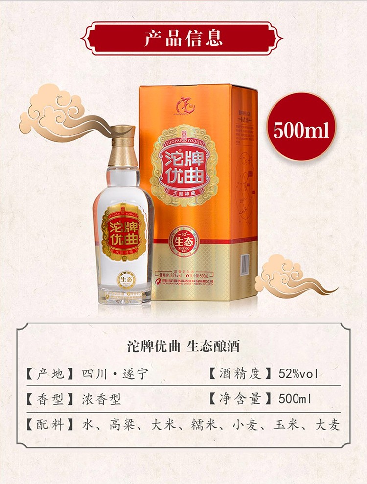 DZ 沱牌舍得酒 沱牌优曲 52度 浓香型白酒 生态酿酒 口感绵柔 500ml*6瓶 整箱装