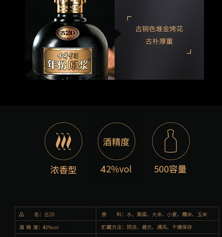 古井贡酒 年份原浆 中国香古20 42度 新老款随机 整箱装白酒500mL*6瓶 浓香型高端白酒