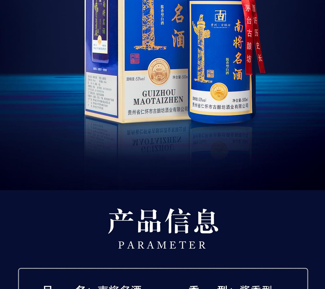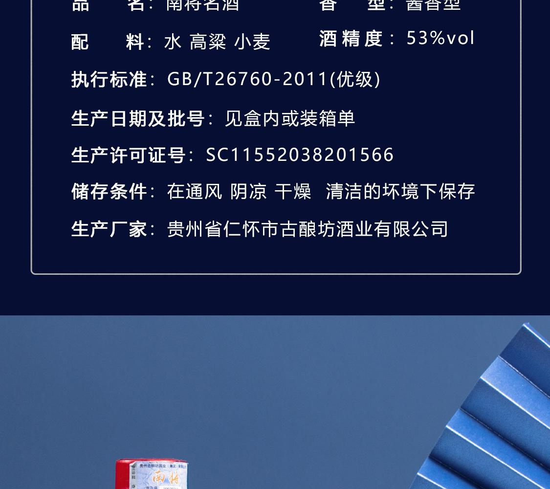 GNF 贵州南将名酒 酱香型白酒53度 粮食酿造 坤沙窖藏老酒 高度白酒 500ml*6 整箱装