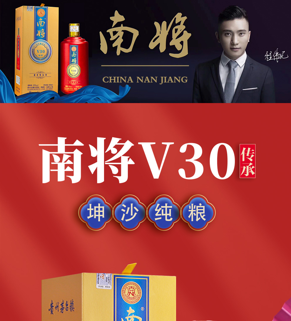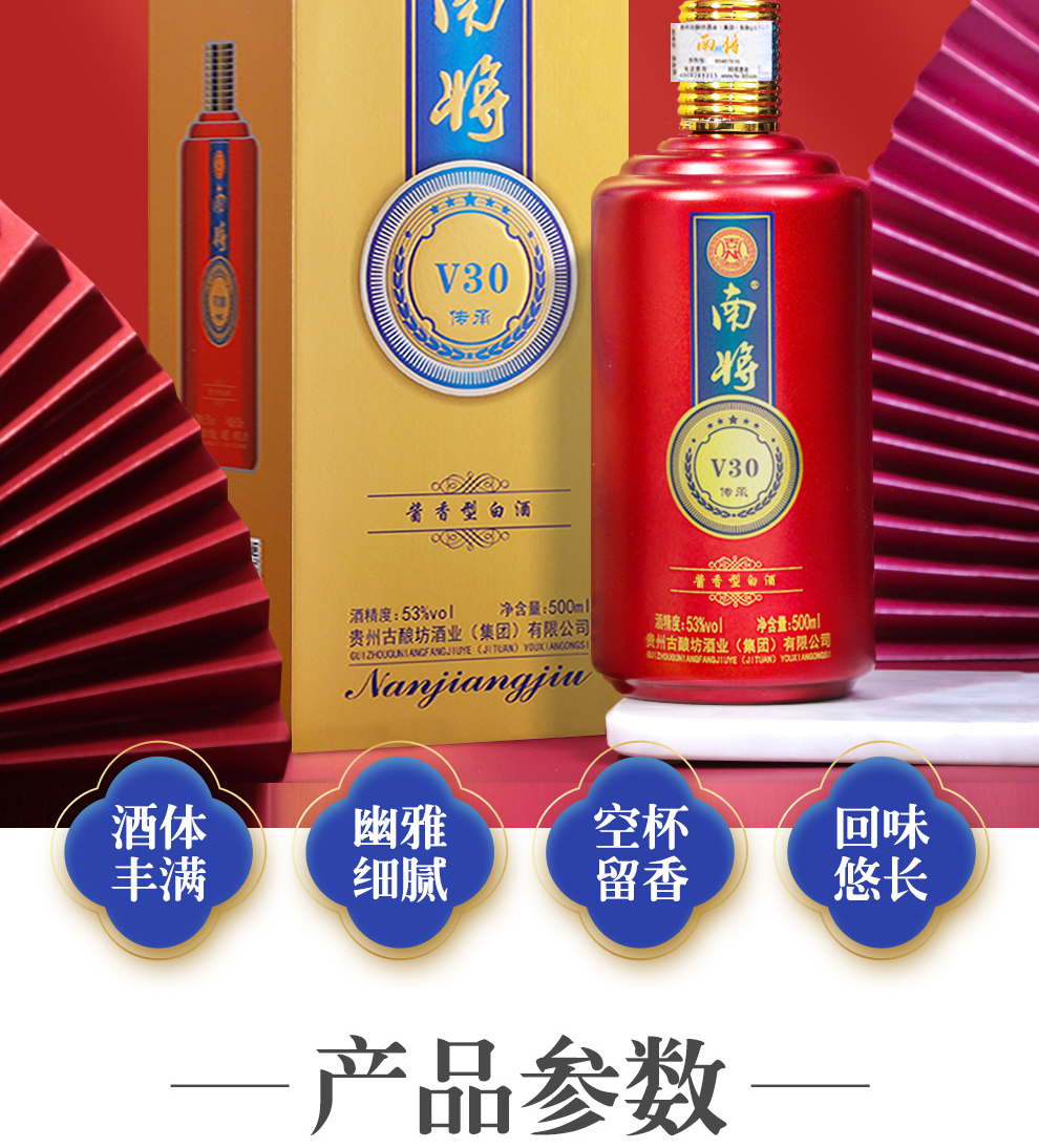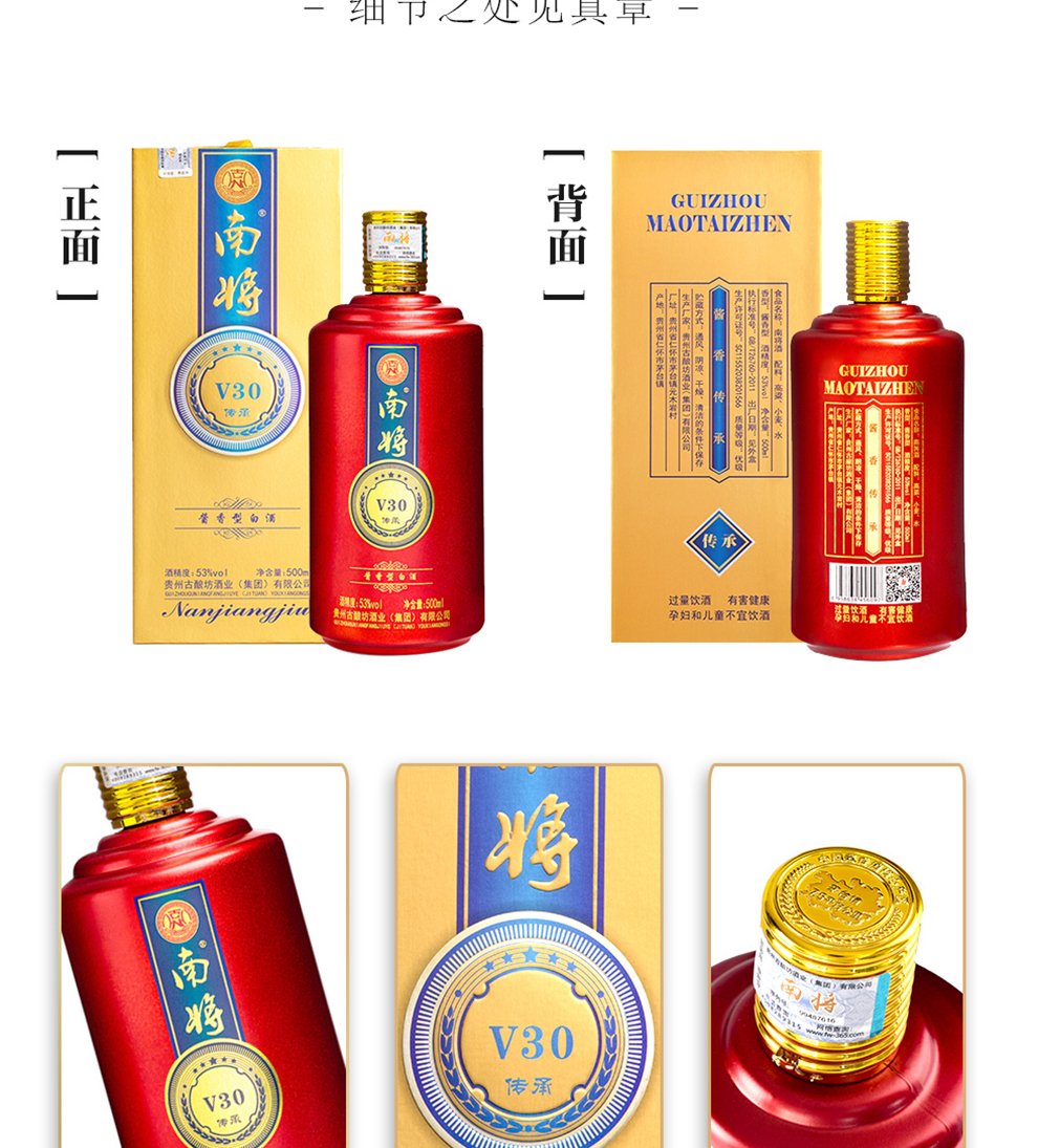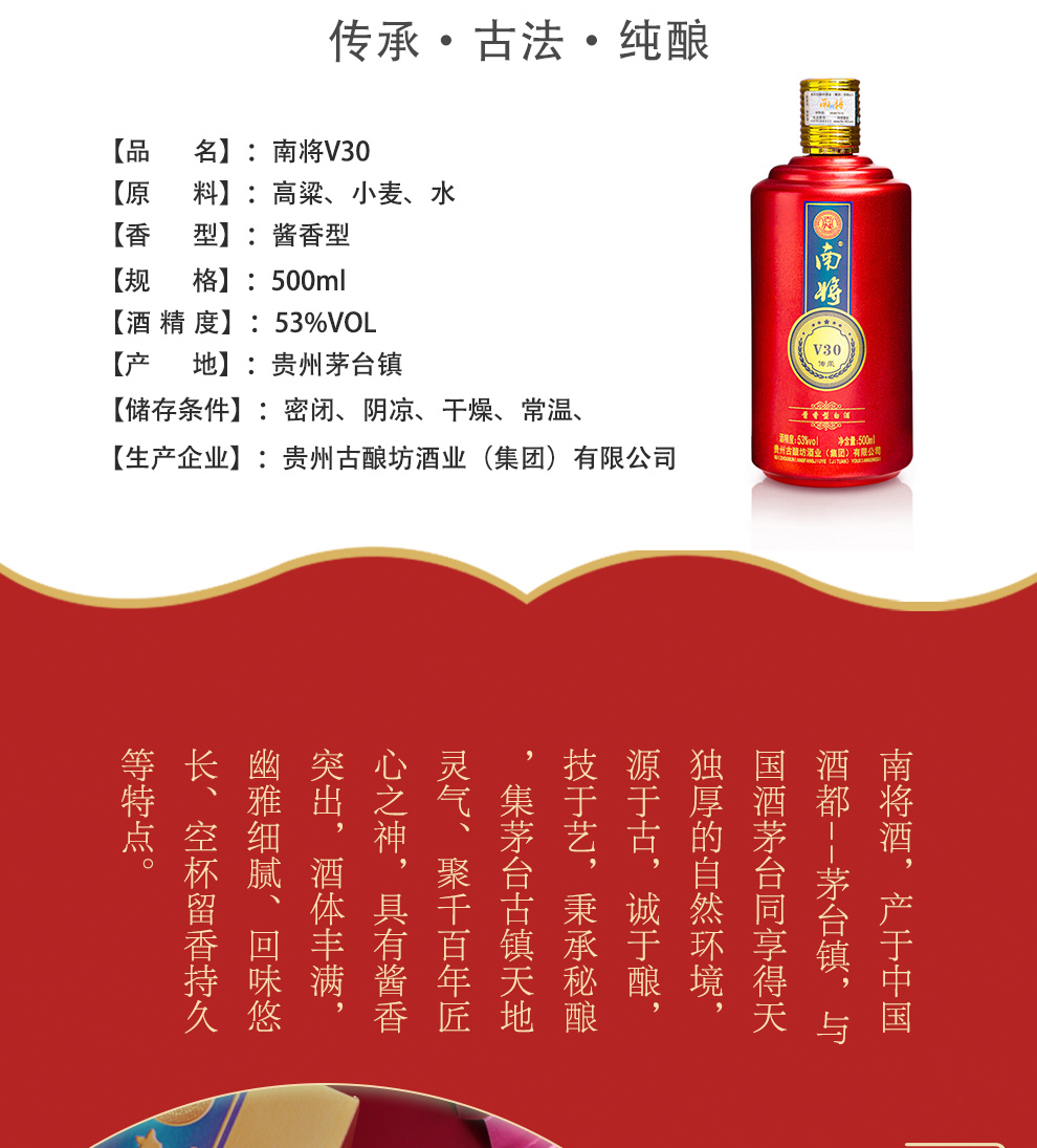 GNF 南将酒 V30 传承 口感柔和 酱香型 红瓶金冠 高度白酒 53度 500ml*6 瓶整箱装