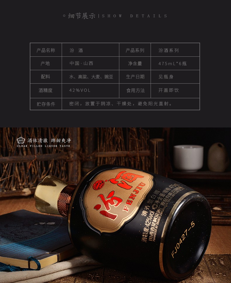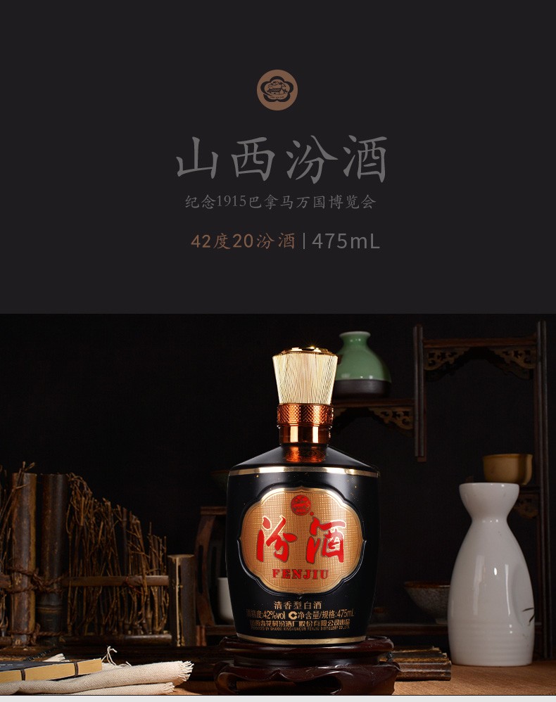 山西汾酒杏花村酒 42度 巴拿马20 475ml *6瓶 清香型白酒整箱