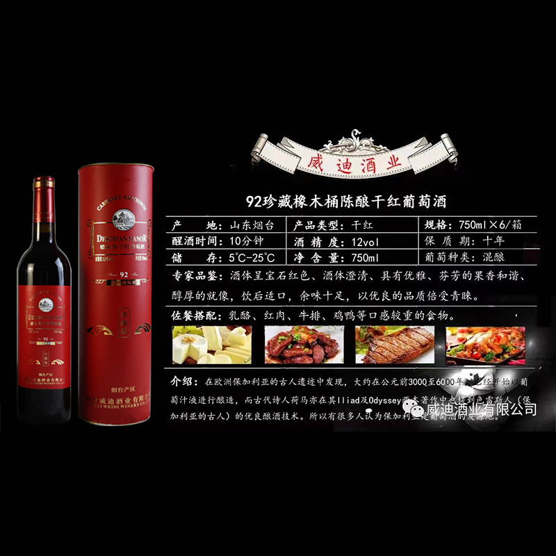 92橡木桶陈酿干红葡萄酒 (圆桶),12度,750ml*6瓶 整箱装 新老随机