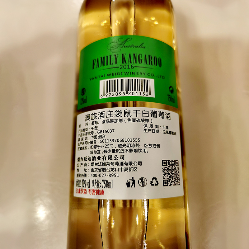 澳族酒庄袋鼠干白葡萄酒,12度,750mlx6