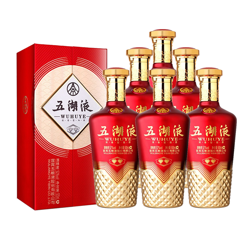 宜宾五粮液股份公司出品 五湖液 二钻 52度 浓香型白酒 五粮浓香 500mL*6瓶 整箱装