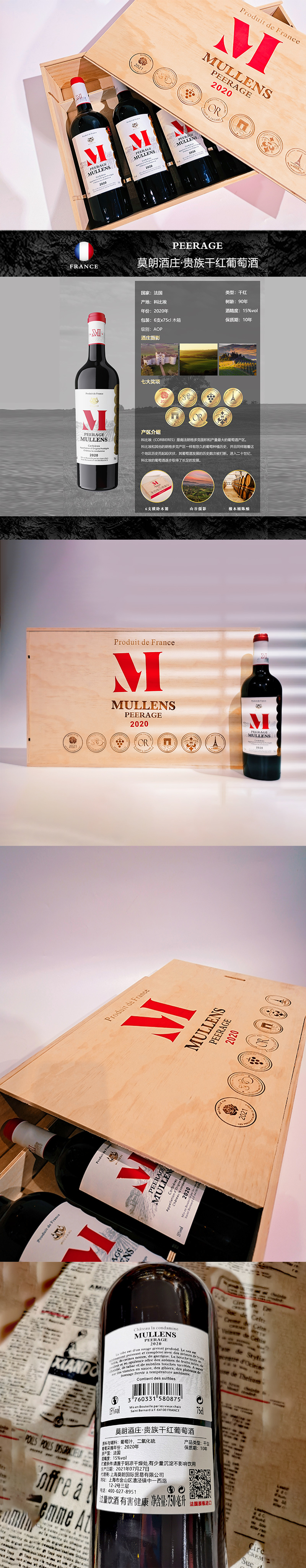 莫朗酒庄贵族干红葡萄酒 (木箱),15度,750mlx6 两箱起发货