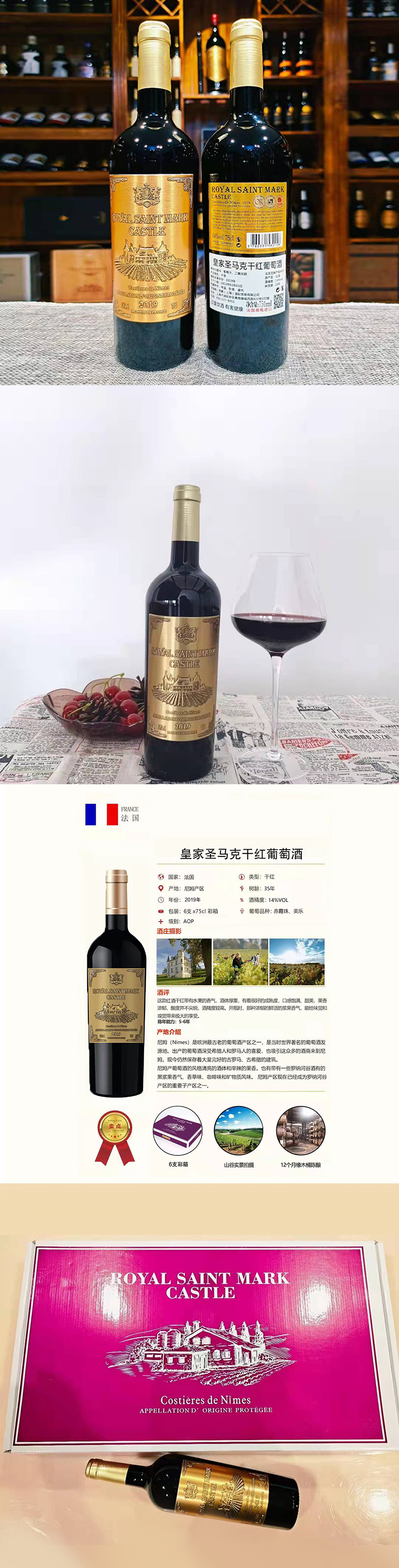 皇家圣马克干红葡萄酒,14度,750mlx6