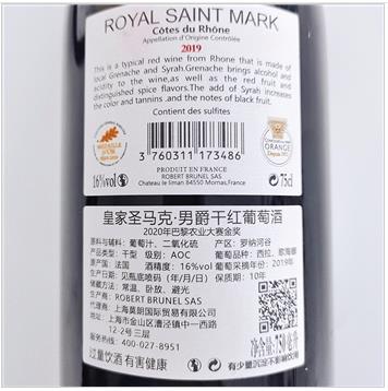 皇家圣马克男爵 干红葡萄酒 16%VOL 75cl*6支 整箱装