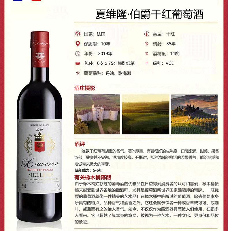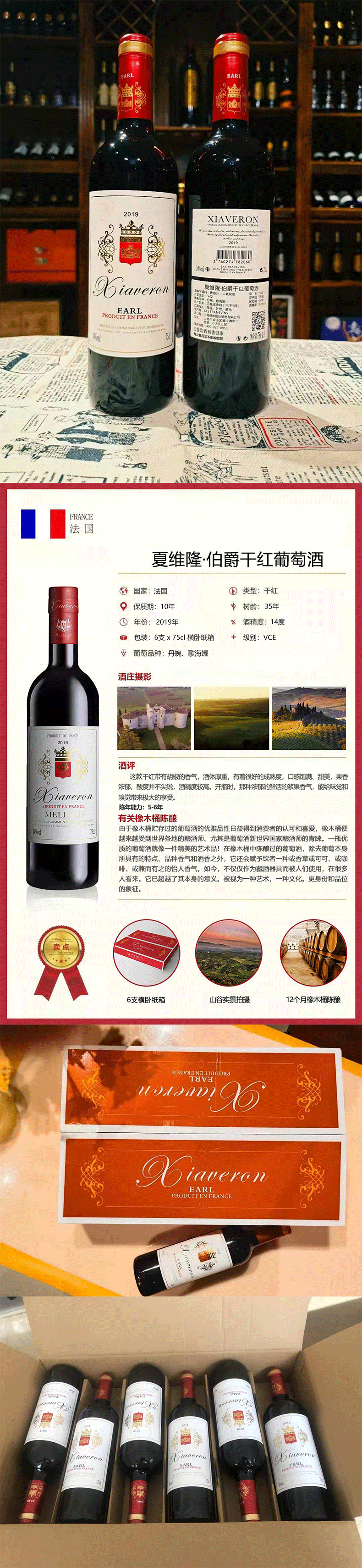 夏维隆伯爵 干红葡萄酒 14%VOL 75cl*6支 整箱装