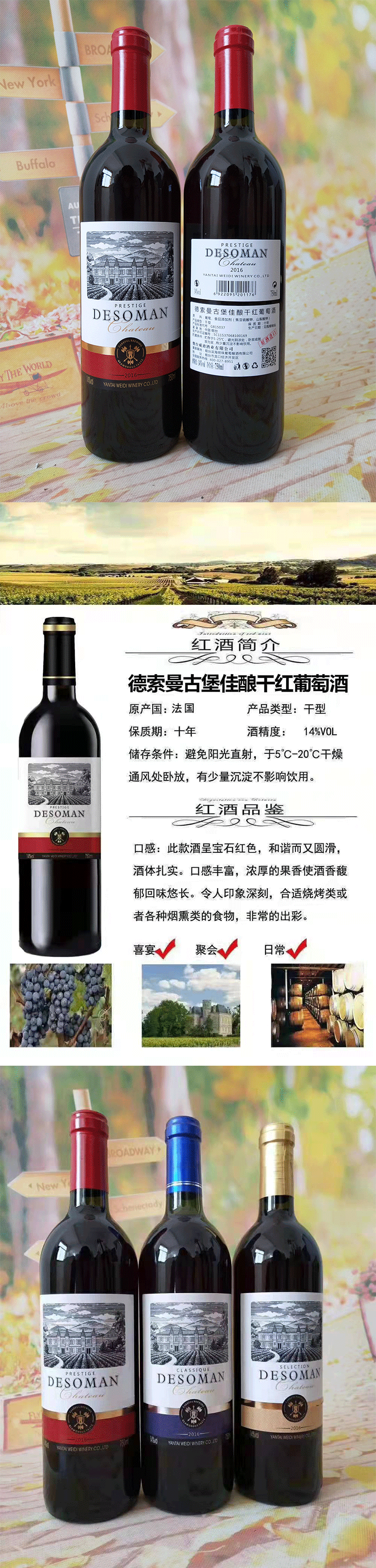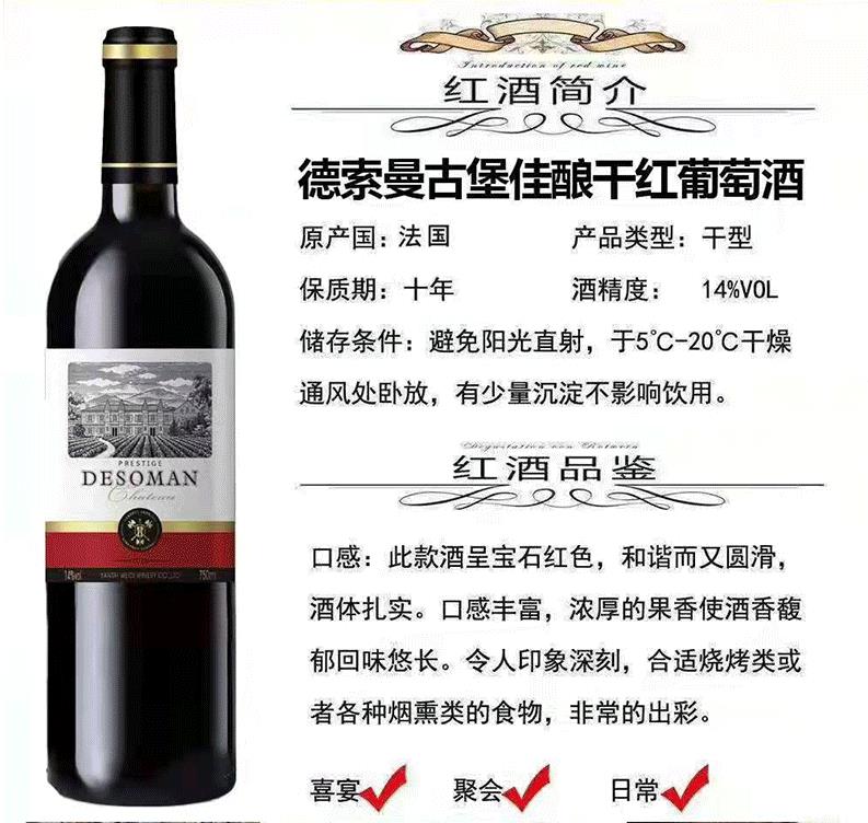 德索曼古堡佳酿 14%VOL 750ml*6瓶 整箱装