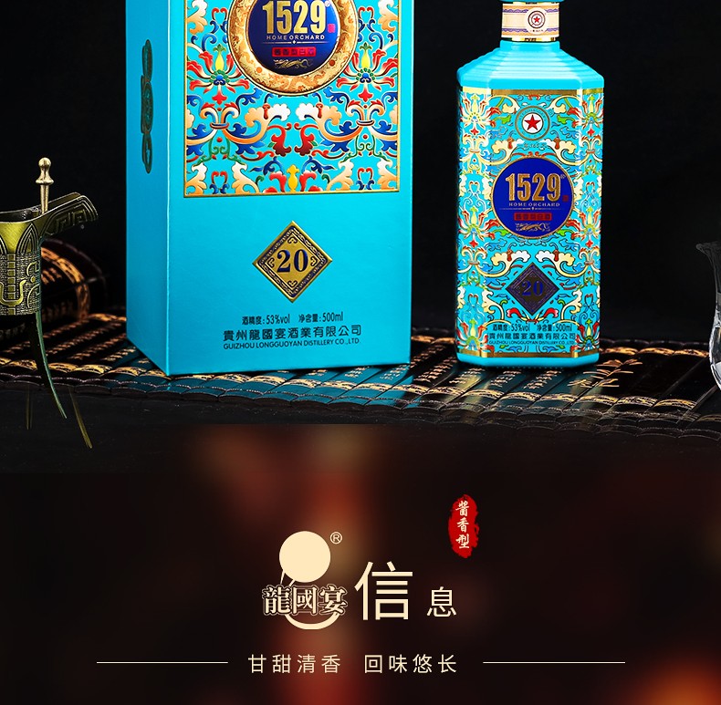 贵州龙国宴1529(20)蒂芙尼蓝 53度 酱香型白酒 500ml*4瓶 整箱
