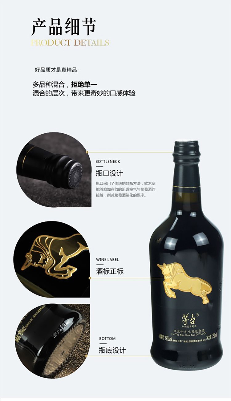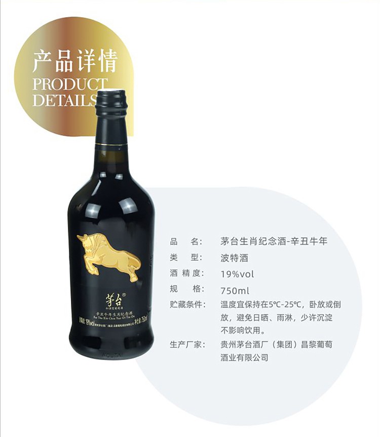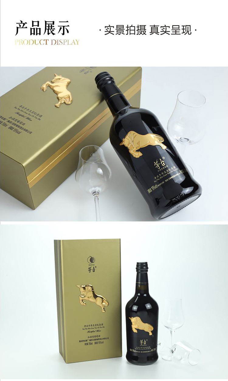 茅台(MOUTAI)红酒 辛丑牛年生肖纪念酒 19度干红葡萄酒礼盒装 750ml*6瓶 整箱装