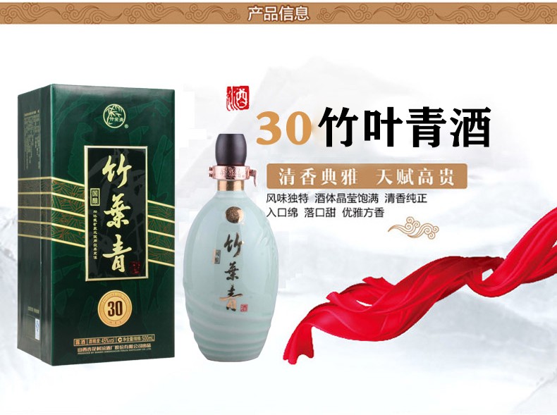 山西杏花村汾酒 45度 30竹叶青酒500ML*6 山西杏花村露酒