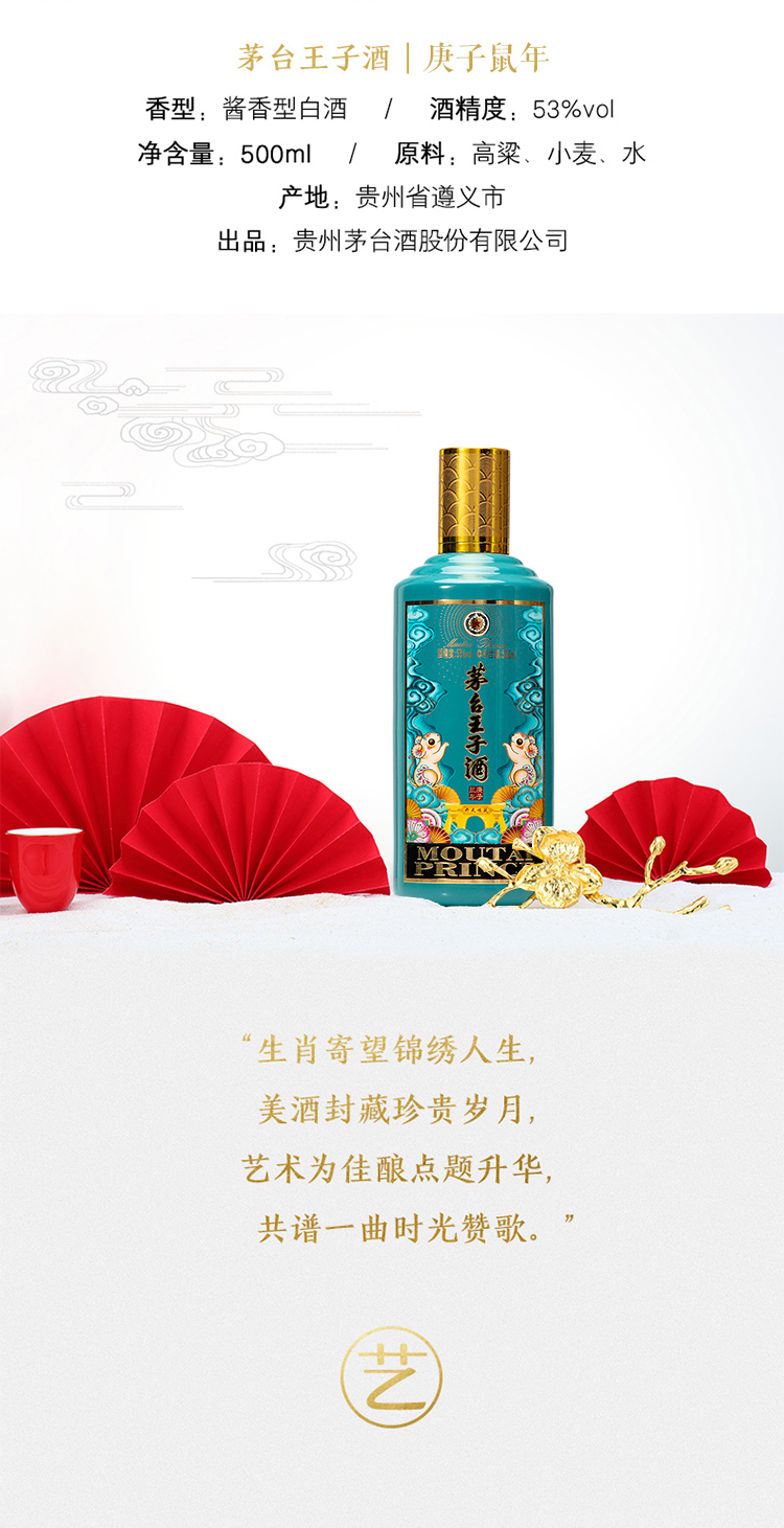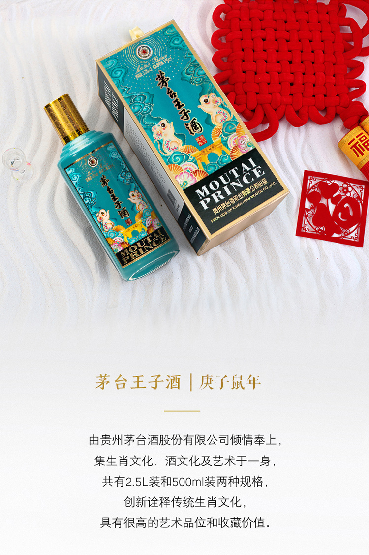 茅台王子酒 (庚子鼠年)生肖酒 53度 白酒 500ml*6整箱装酱香型