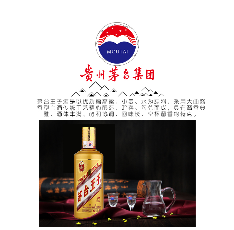 茅台王子酒 金王子 53度 500ml*6瓶 整箱装