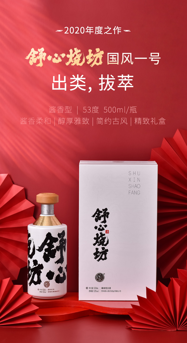 GJW 舒心烧坊国风壹号舒心酱酒53度500ml单瓶礼盒装酱香型白酒粮食酒