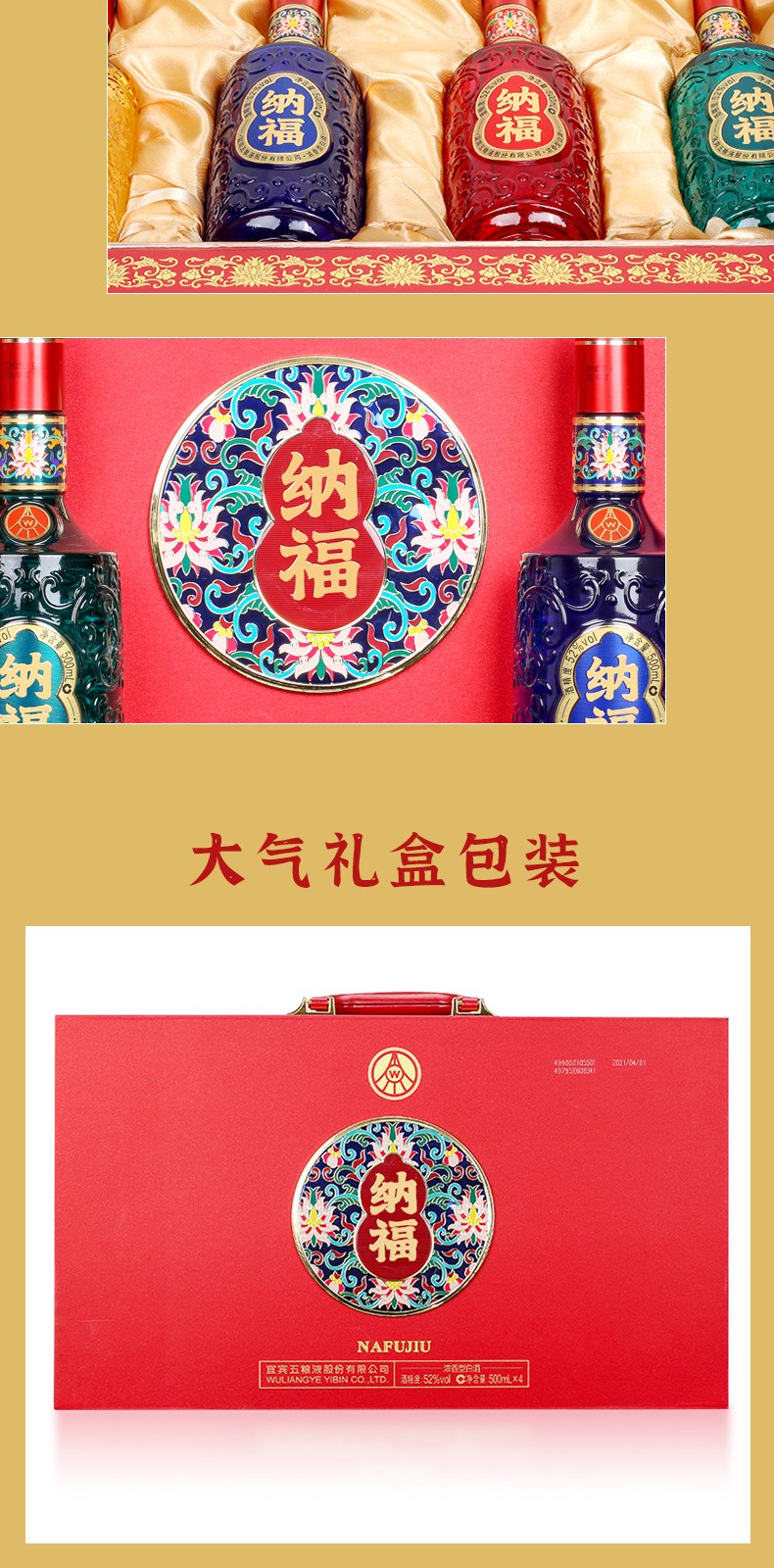 GJW 五粮液股份公司 纳福锦绣尊享500ml*4瓶礼盒装52度浓香型白酒
