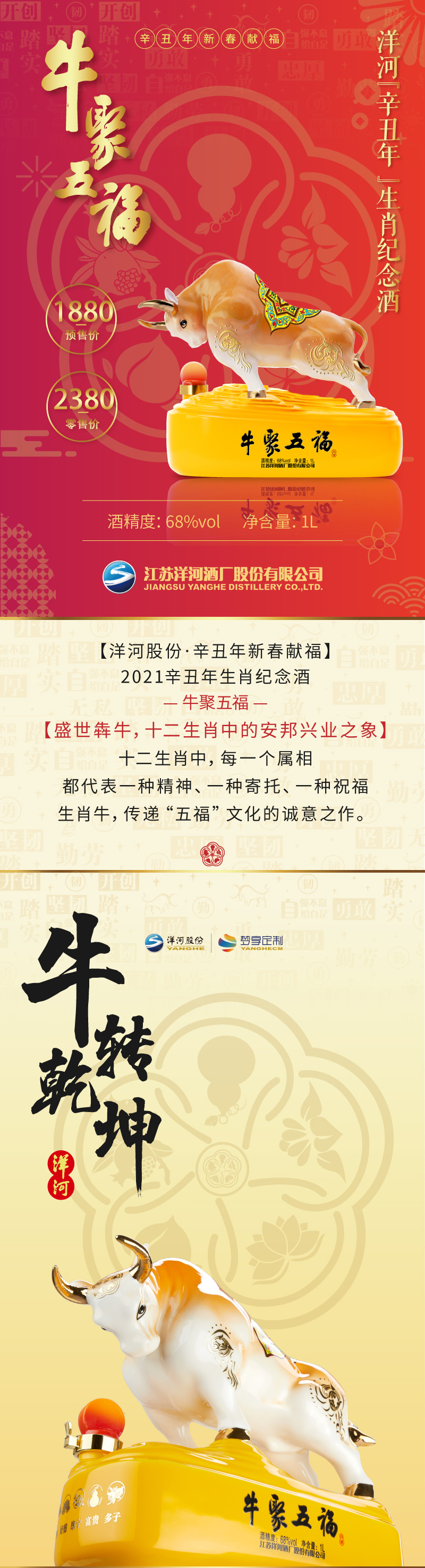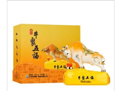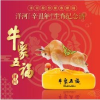 洋河牛年生肖纪念酒 牛聚五福 68度浓香型白酒礼盒 1L