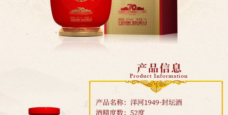 【2019年封坛酒】洋河 52度1L洋河1949封坛酒 礼盒装 52度1L 礼盒装