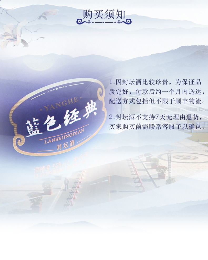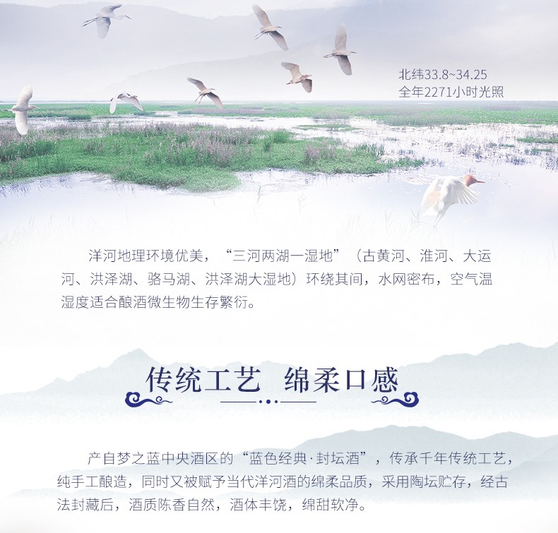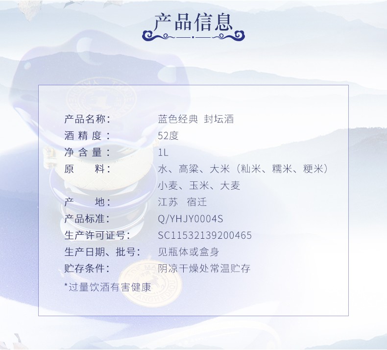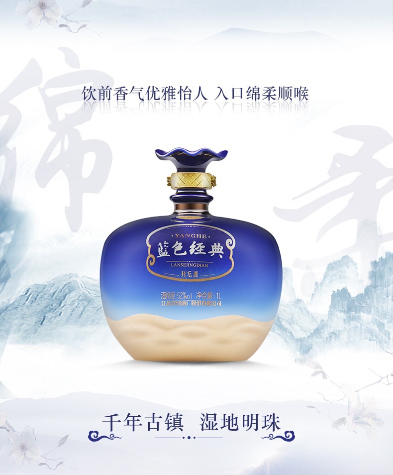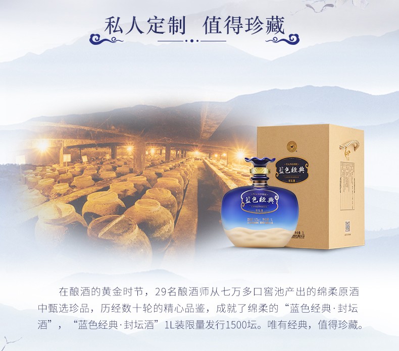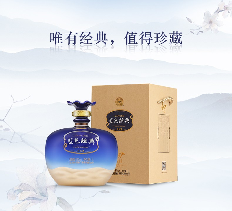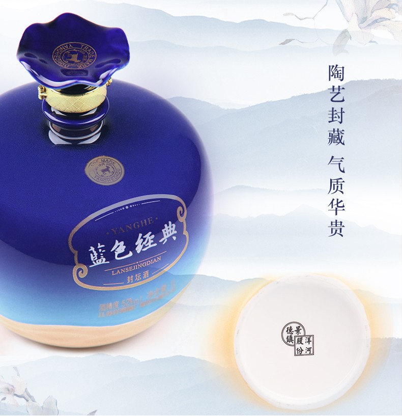 【洋河 2017年封藏大典】蓝色经典封坛酒52度1L 绵柔型白酒 1L单瓶装