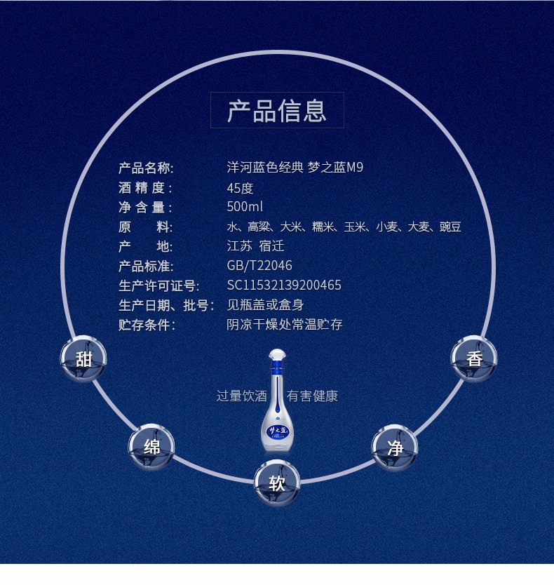 洋河蓝色经典 梦之蓝M9 45度白酒 绵柔浓香型高端送礼自饮佳品 500ml*4 整箱装