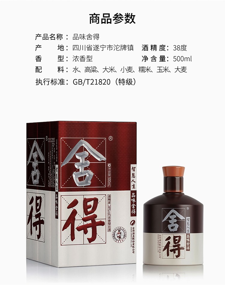 沱牌舍得 舍得酒 品味舍得 38度 500ml *6瓶 整箱装 浓香型白酒