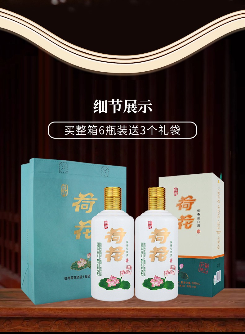 荷花酒 国乡荷花封藏捌 大曲坤沙酱香型53度白酒500ml 茅台镇 6瓶整箱装