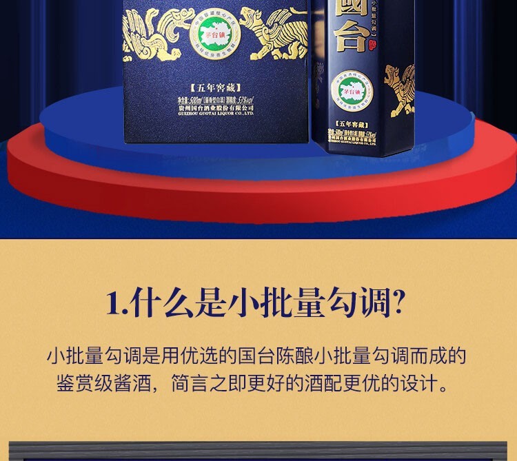 贵州国台酒业 商务宴请送礼收藏自用 高端礼盒白酒 国台 五年窖藏 小批量勾调500ml*6整箱装 53度 酱香型白酒