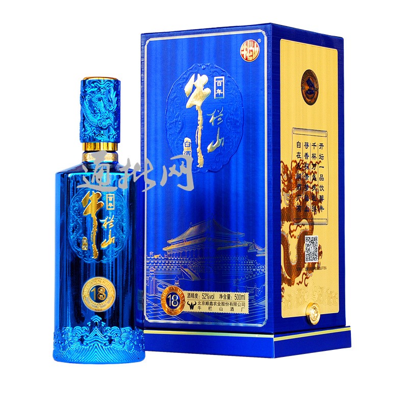 百年牛栏山白酒 52度炫蓝瓶龙腾嘉酿18 浓香型 500ML *6瓶 整箱