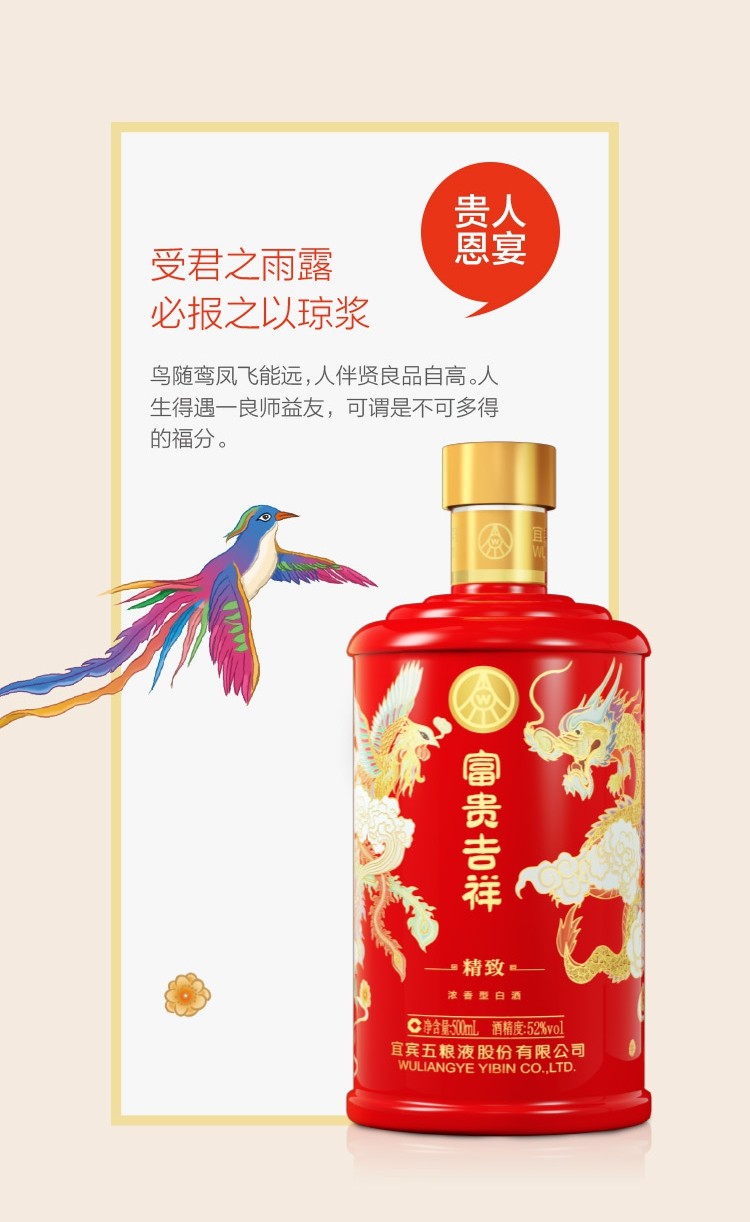 五粮液股份 富贵吉祥精致 婚宴喜酒 浓香型白酒 整箱装 52度 500ml*6瓶 高度纯粮食酒水