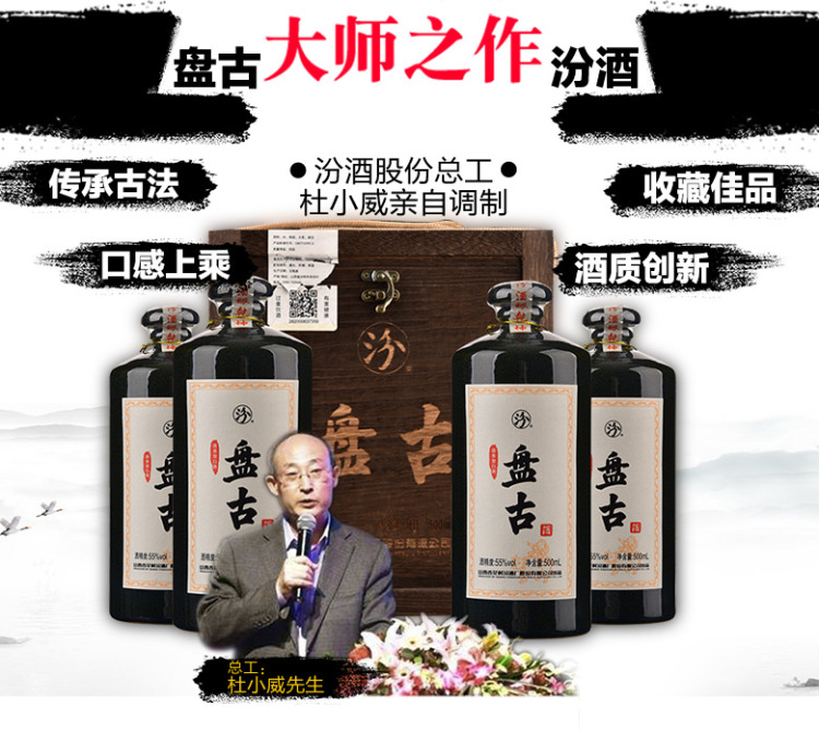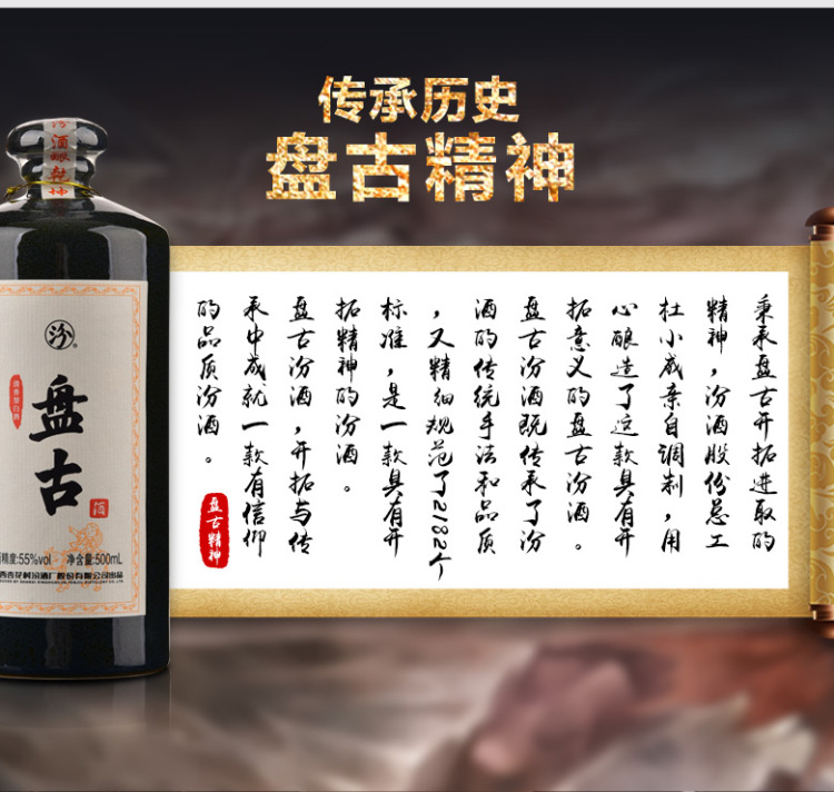 汾酒 清香型白酒 山西白酒 高度白酒 盘古汾酒500ml*4