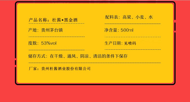 杜酱黑金酒 53度酱香型白酒,茅台镇纯粮坤沙老酒 十二年陈酿老酒 荣获巴拿马万国博览会金奖 整箱6瓶装