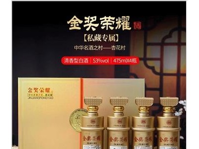 山西杏花村镇产地 金奖荣耀 53度清香型白酒 固态发酵 纯粮酒水 475ml*4瓶礼盒装