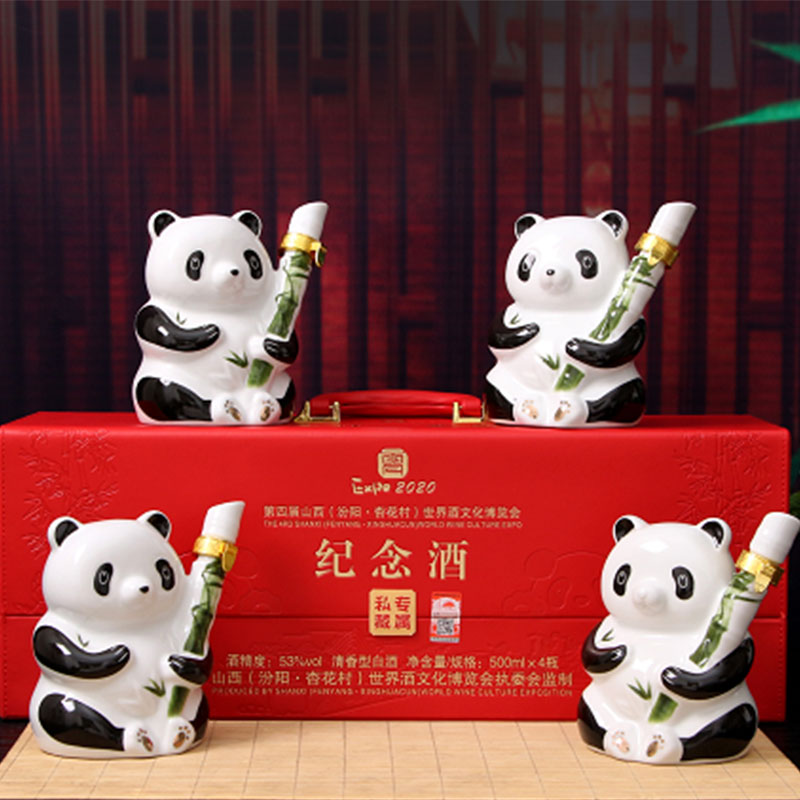 第四届世界酒文化博览会纪念酒(熊猫)53度 清香型白酒 500ml*4瓶 礼盒装