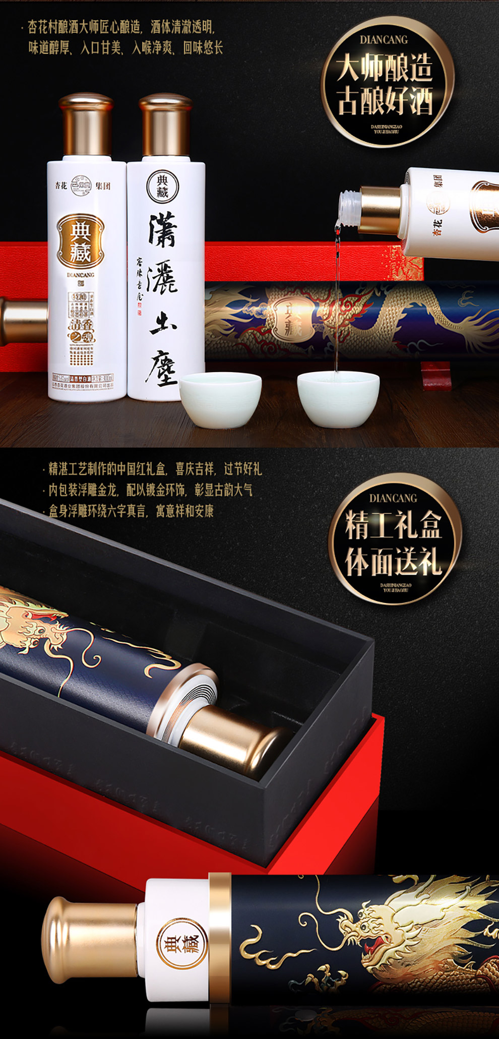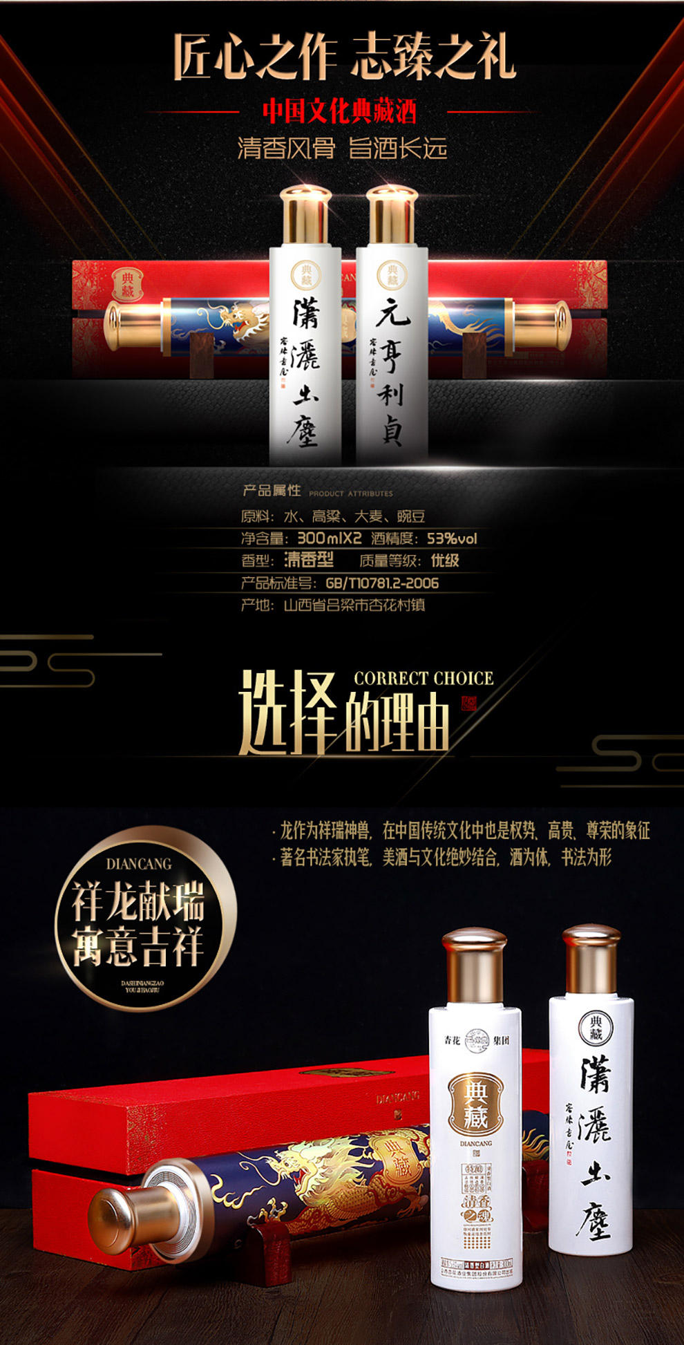山西杏花集团 典藏原浆53度清香型国产白酒礼盒 文化收藏小酒 300ml*2瓶整箱