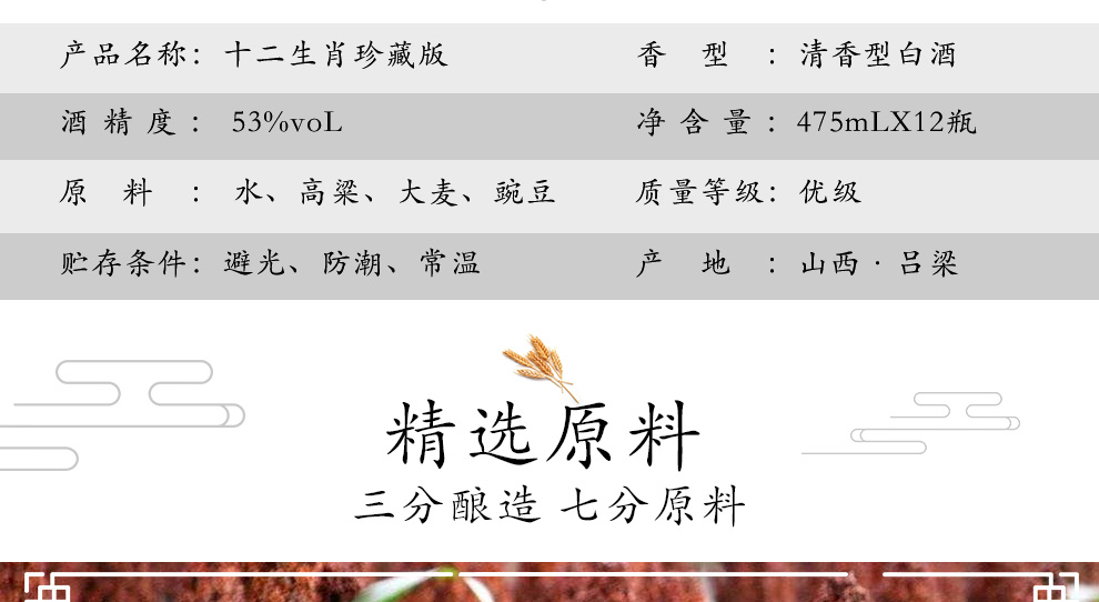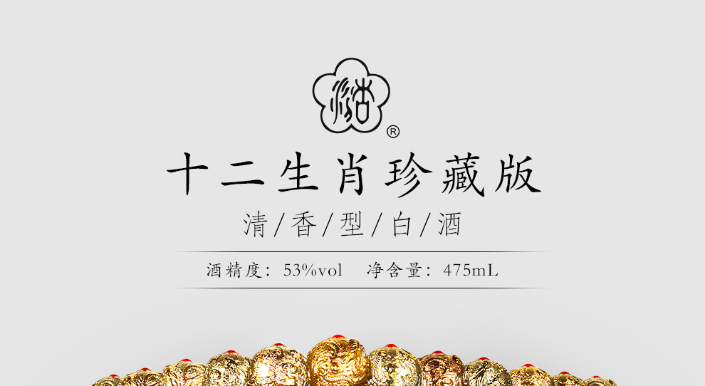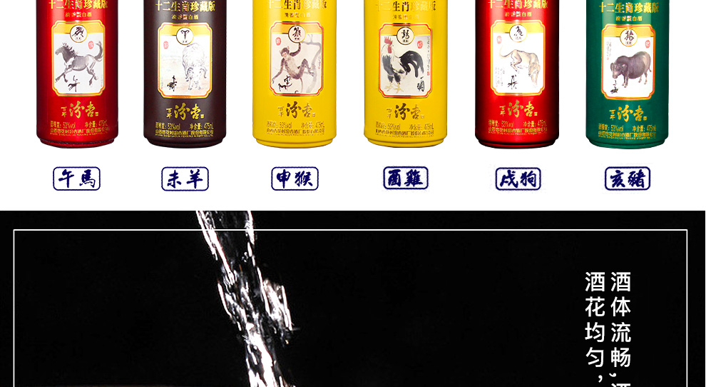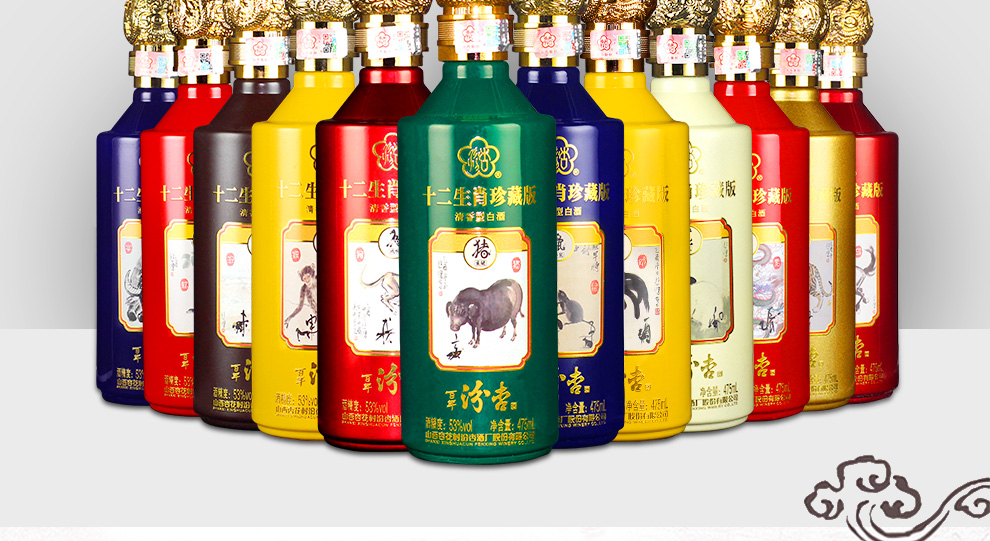 汾杏 山西杏花村酒百年汾杏 清香型白酒高度 53度 十二生肖 475ml*12瓶 整箱装