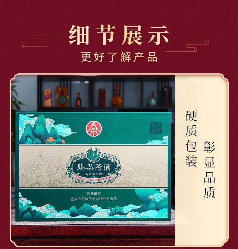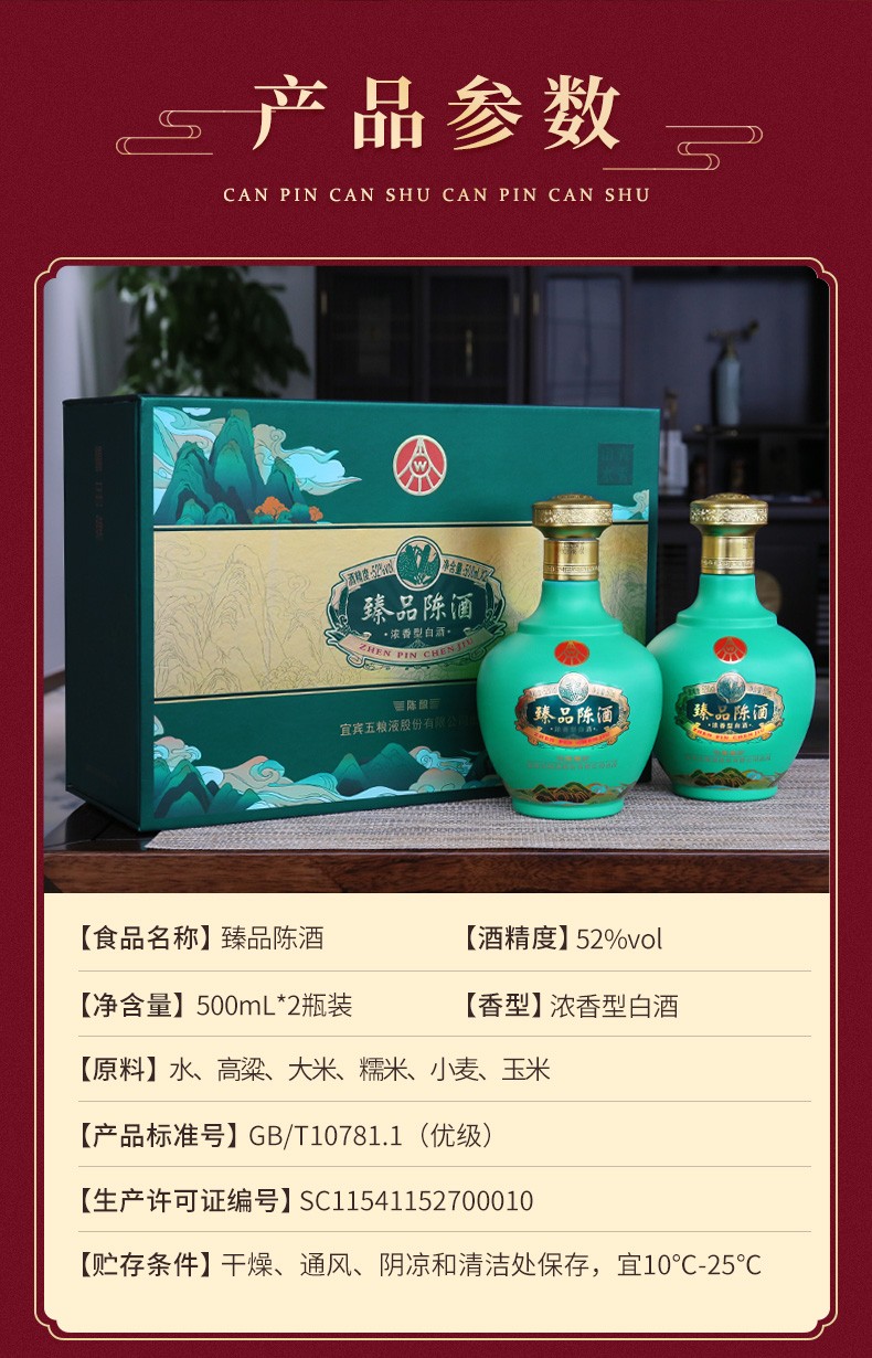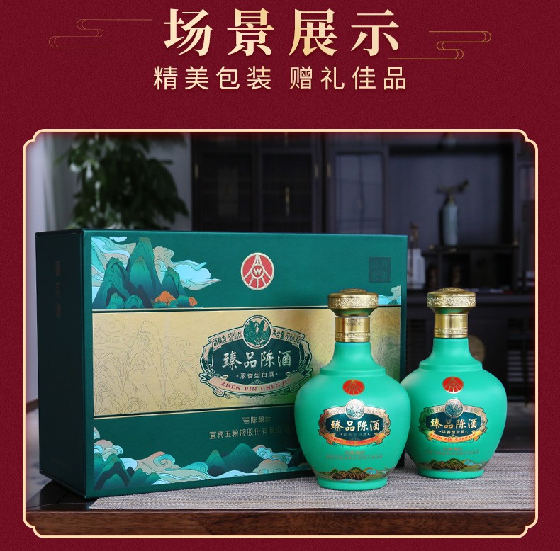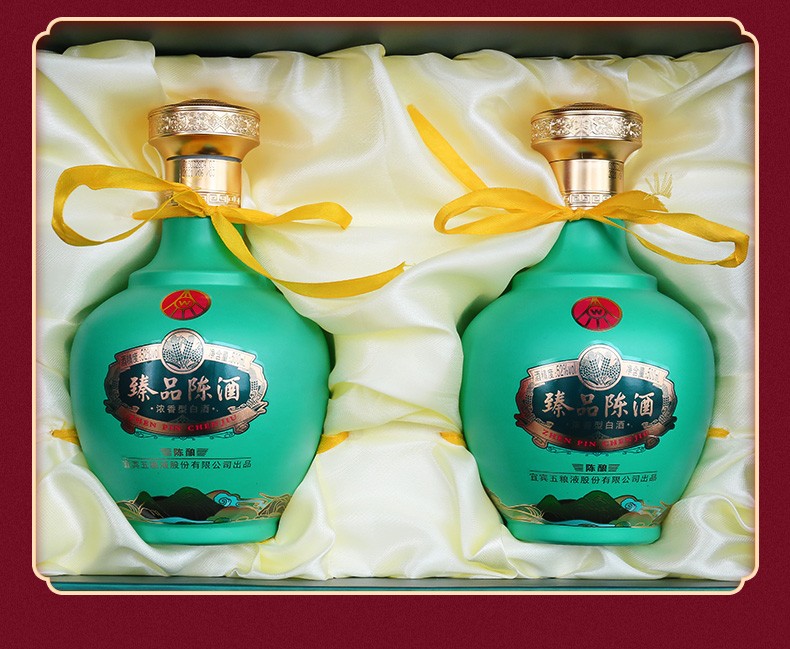 五粮液股份公司 臻品陈酒陈酿 山清水秀 52度 浓香型白酒 500ml*2瓶 礼盒装