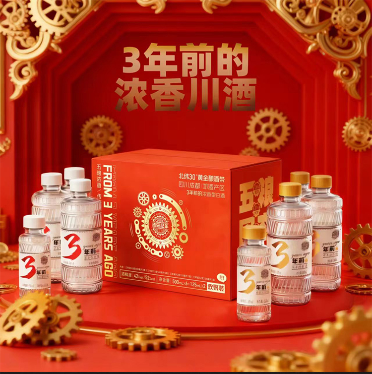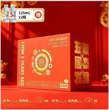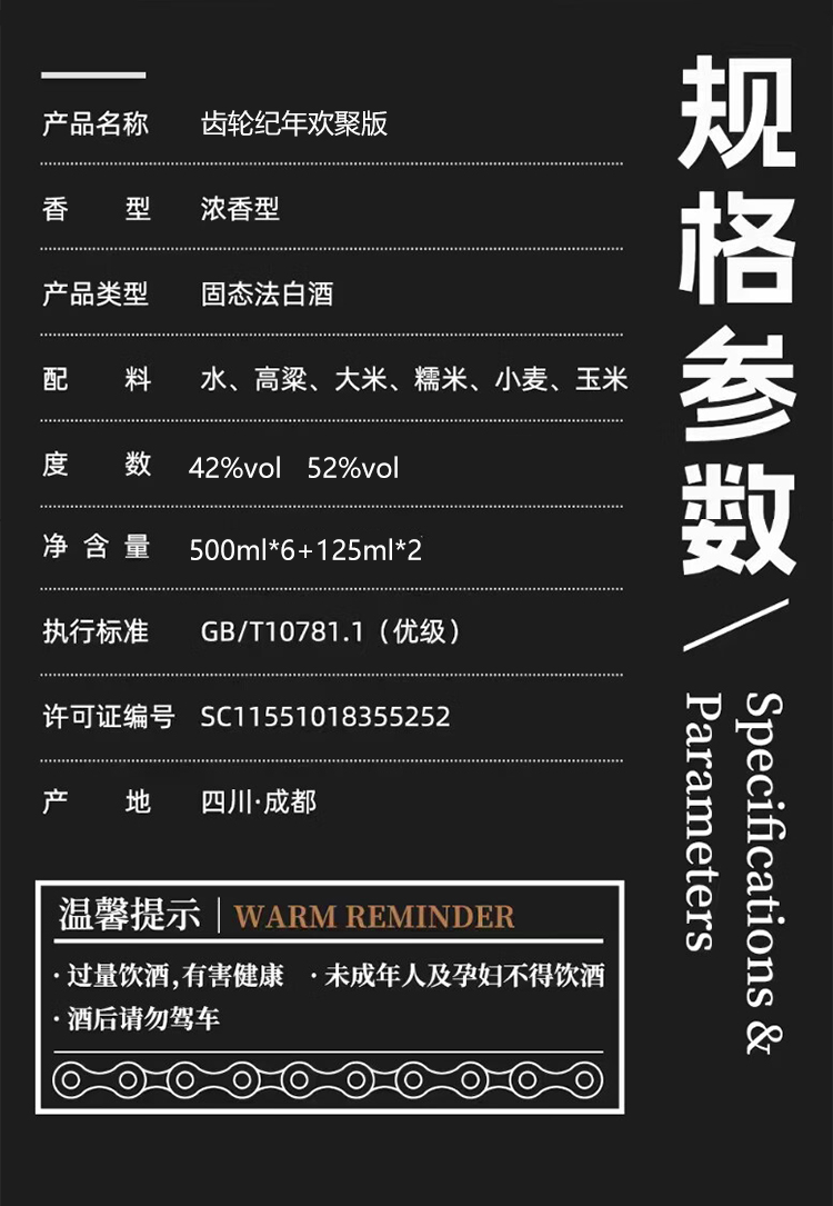 齿轮纪年欢聚版 浓香型白酒 聚会送礼 42度 500ml*3瓶+125ml*1瓶 52度 500ml*3瓶+125ml*1瓶 整箱装