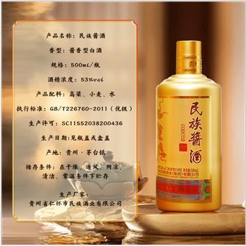 民族酱酒 酱8 53度 酱香型 粮食高度白酒 500ml*6瓶 整箱装