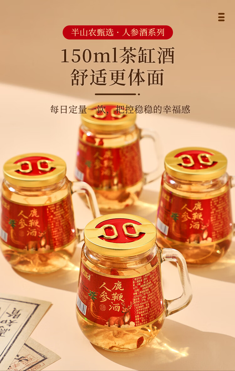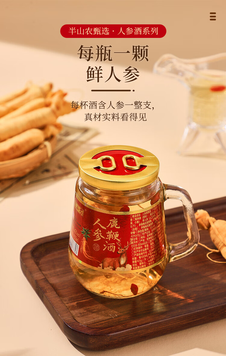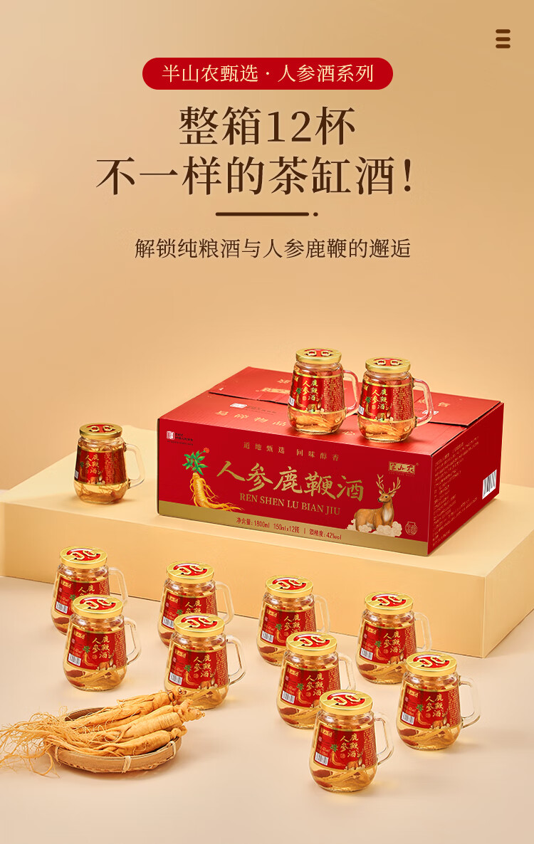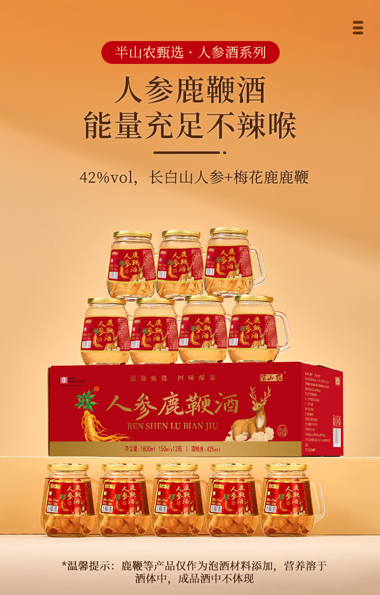 半山农 人参鹿鞭酒 42度 枸杞鹿鞭鹿茸酒 补品 150ml*12瓶 整箱装